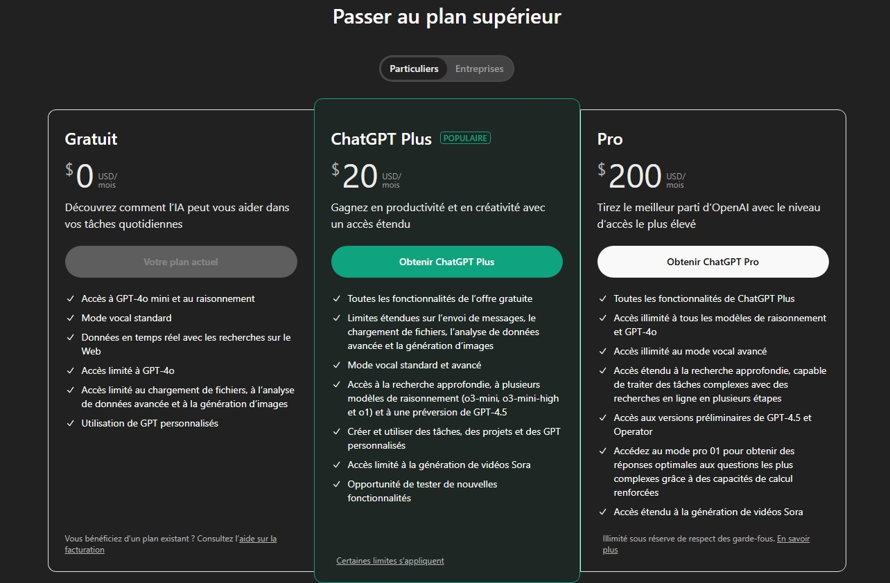 📌 Important : L’abonnement n’est pas obligatoire, mais ChatGPT Plus est recommandé pour un usage professionnel plus fluide.